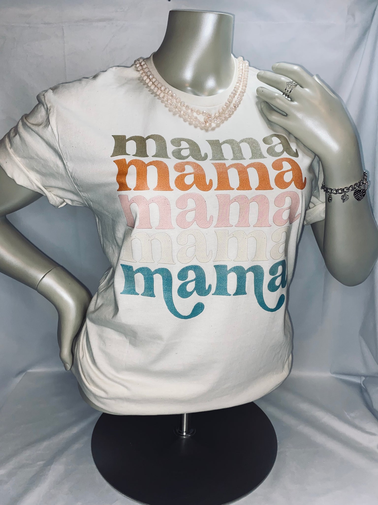 Tee is short sleeve, Natural color, as pictured. Bracelet will either be silver or gold tone. Leave your preference in the notes!